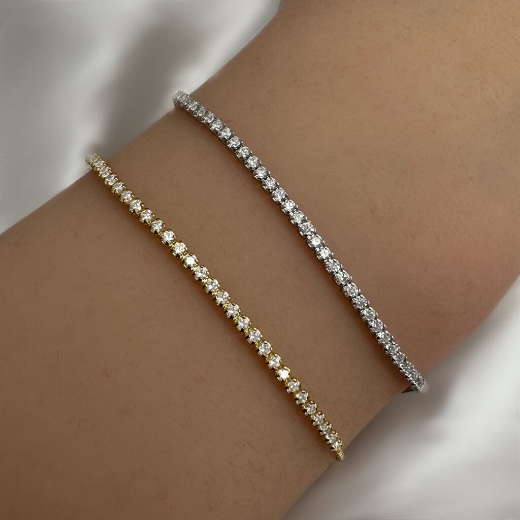 צמיד טניס בייסיק שיבוץ דק מציפוי זהב וכסף 925