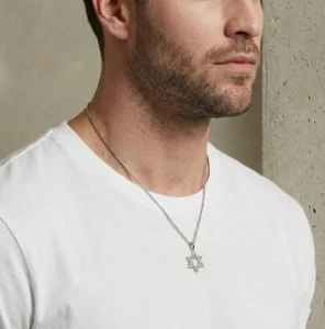 שרשרת כסף מגן דוד משובץ זירקונים לגבר