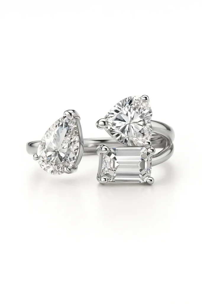 טבעת פתוחה בעיצוב מיקס חיתוכי יהלום