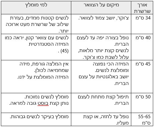- אורך הסטנדרטי עבור גבר היינו 50 ס"מ.