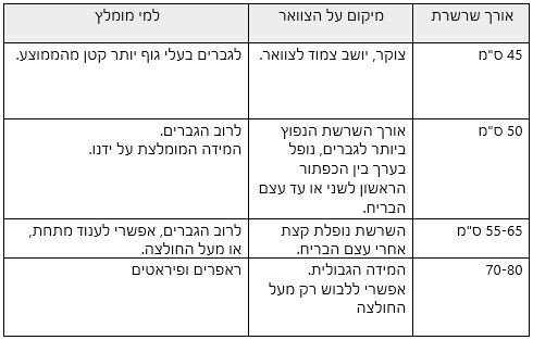 • אורך הסטנדרטי עבור גבר היינו 50 ס"מ