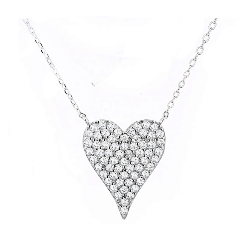 שרשרת תלתן יוקרתית מכסף משובצת זירקונים עם זרקן בצורת לב