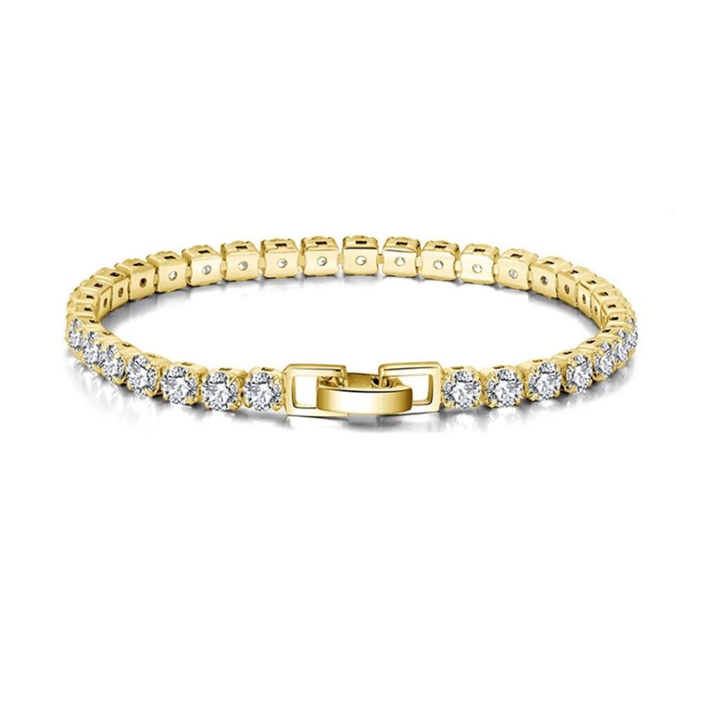 צמיד טניס בייסיק שיבוץ דק מציפוי זהב וכסף 925
