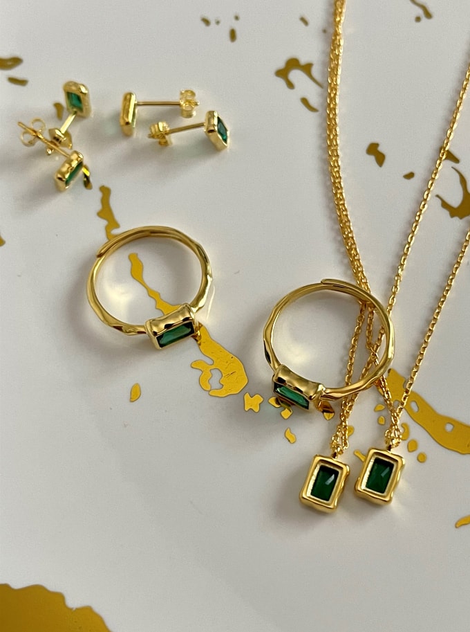 סט עלי תלתן צבע ירוק ציפוי זהב 18K