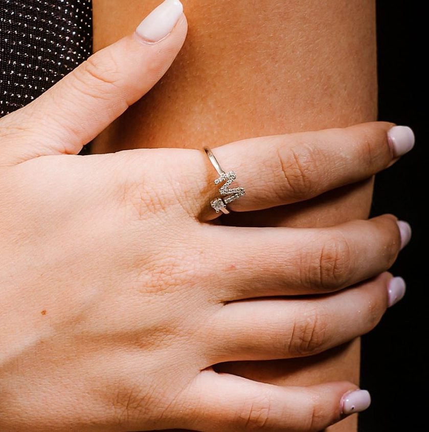 טבעת אות M משובצת זירקונים מכסף 925 טהור לאישה. הטבעת משובצת בזירקוני AAAA בחיתוך יהלום. הטבעת ניתנת להקטנה והגדלה לפי מידת האצבע. מצופה ברודיום להגנה מפני התחמצנות ושריטות. המוצר מגיע באריזת מתנה מהודרת וממותגת! חצי שנה אחריות.