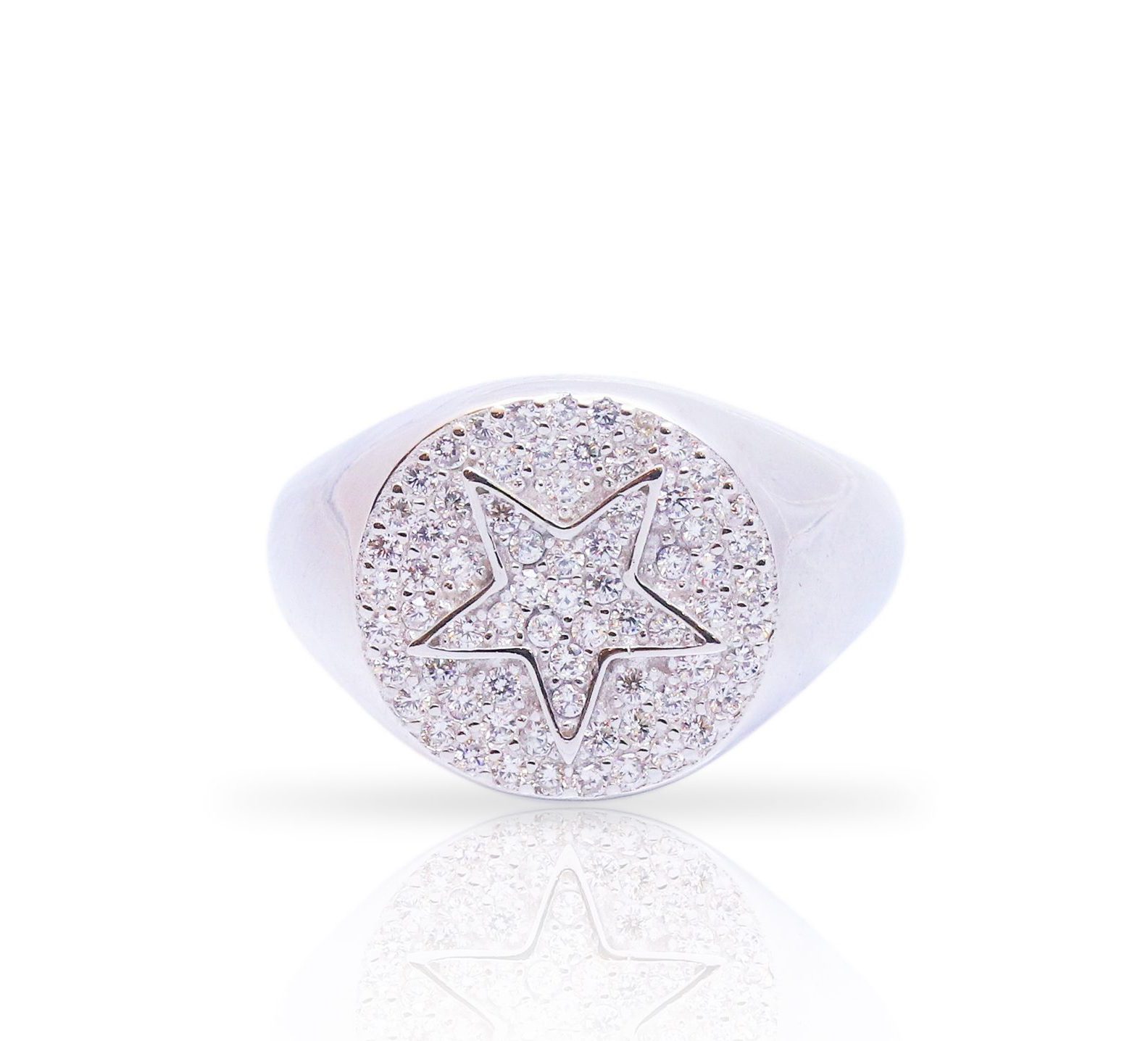 טבעת עם אלמנט כוכב משובצת זירקונים מכסף 925 טהור לאישה. הטבעת משובצת בזירקוני AAAA בחיתוך יהלום. מצופה ברודיום להגנה מפני התחמצנות ושריטות. המוצר מגיע באריזת מתנה מהודרת וממותגת! חצי שנה אחריות.