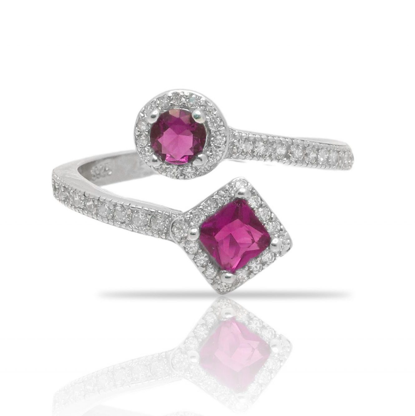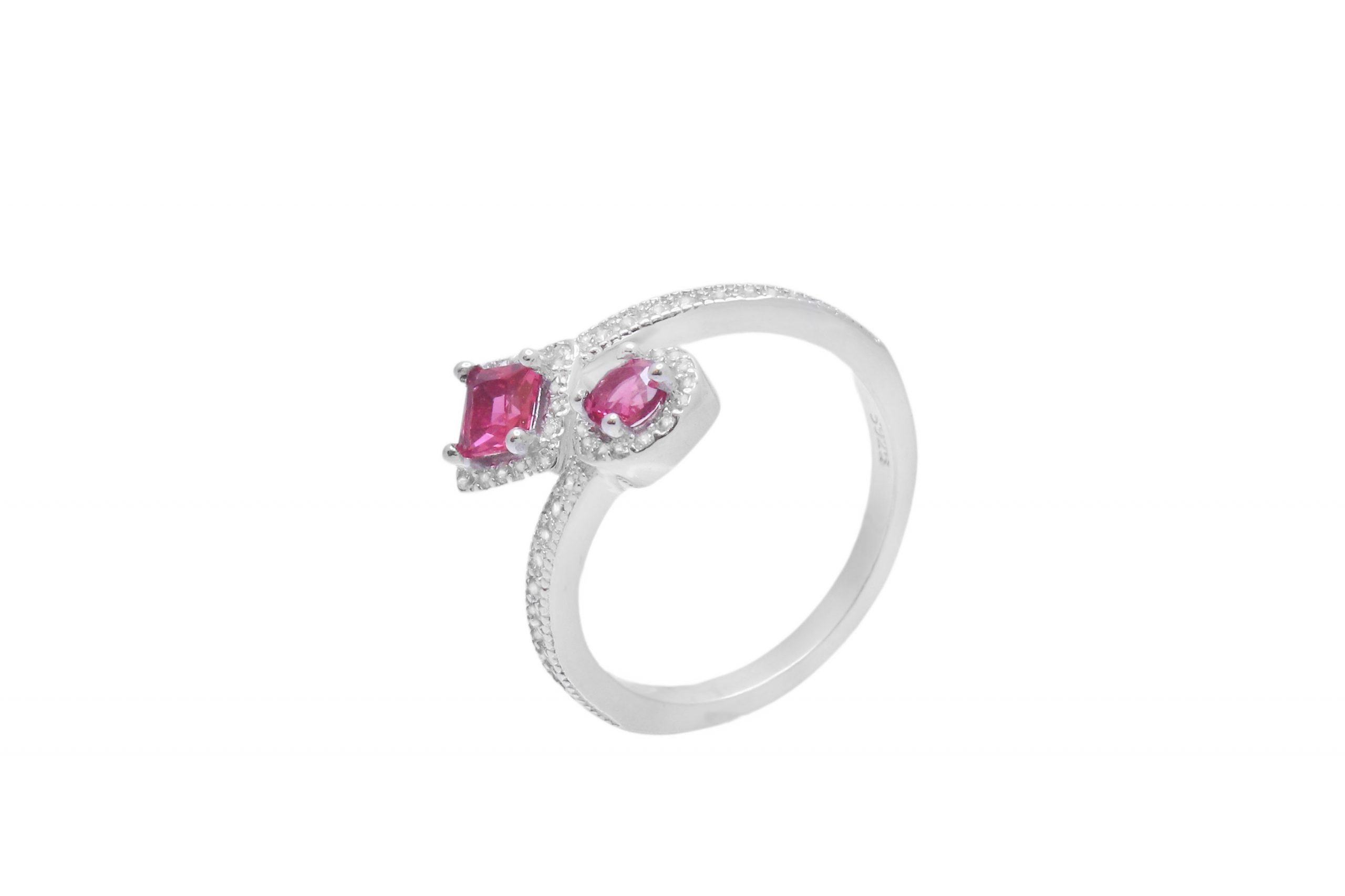 טבעת כסף אלמנט עגול ומשולש שיבוץ ורוד