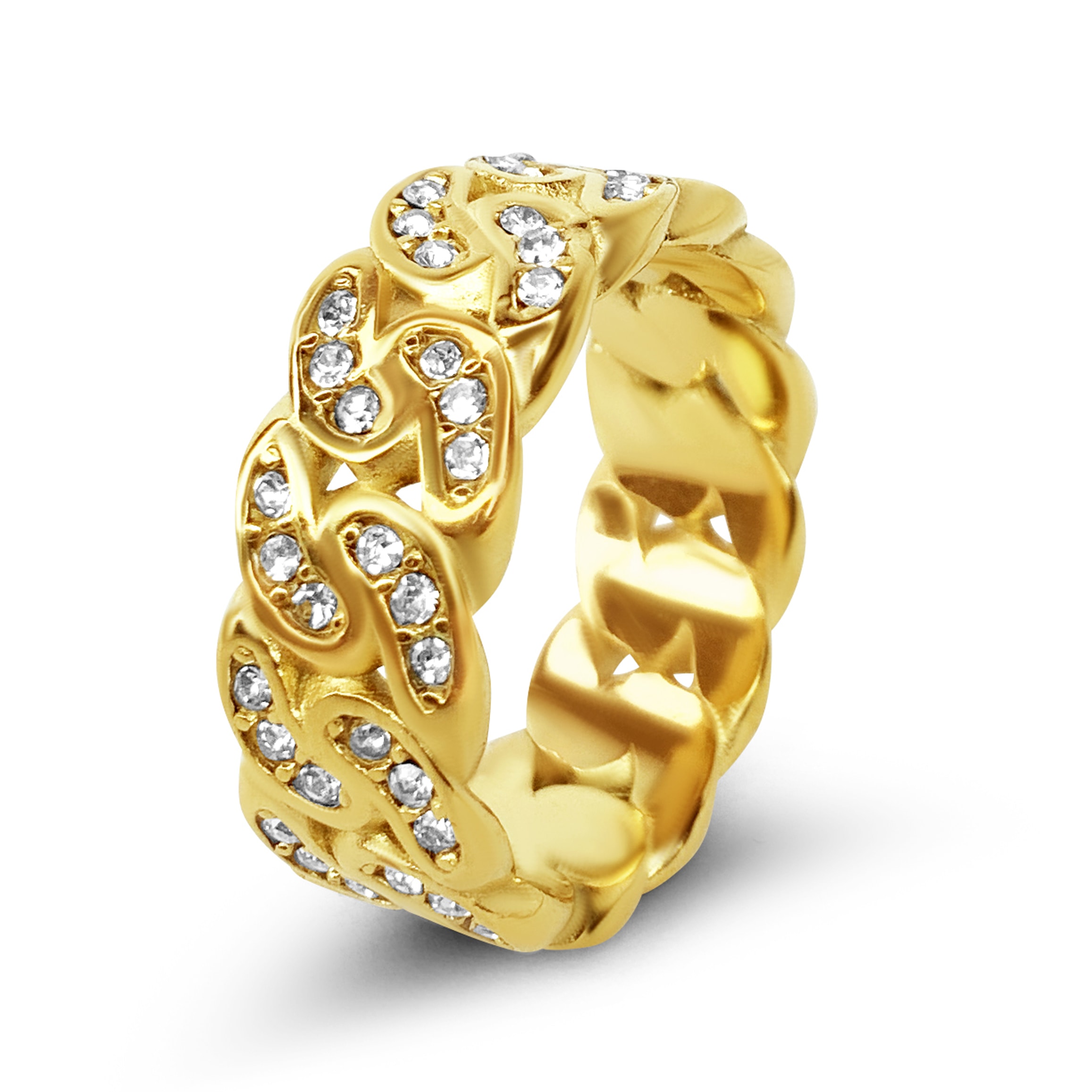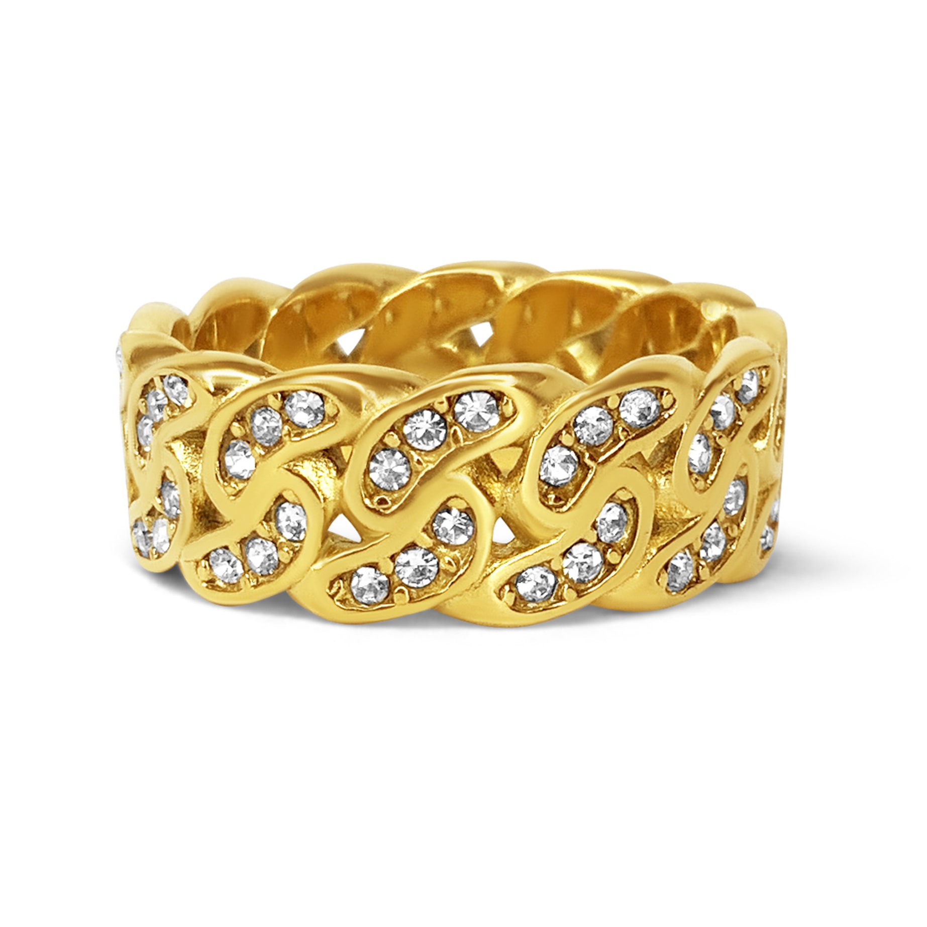 הטבעת משובצת בזירקונים שקופים. הטבעת עשויה מפלדת אל חלד, לא משחירה ולא מחלידה.