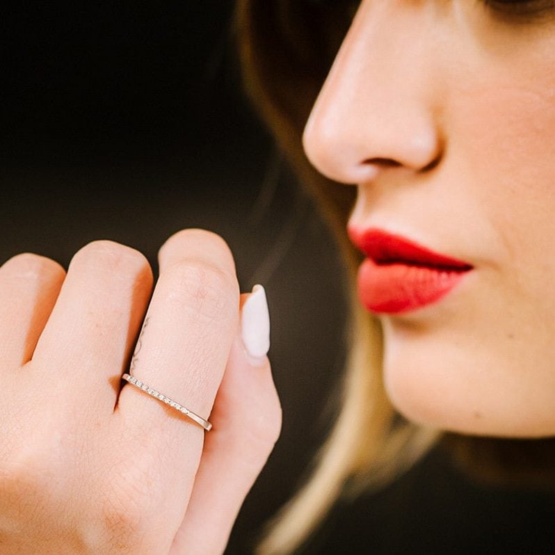 טבעת דקה משובצת זירקונים מכסף 925 טהור לאישה. הטבעת משובצת בזירקוני AAAA בחיתוך יהלום. מצופה ברודיום להגנה מפני התחמצנות ושריטות. המוצר מגיע באריזת מתנה מהודרת וממותגת! חצי שנה אחריות.
