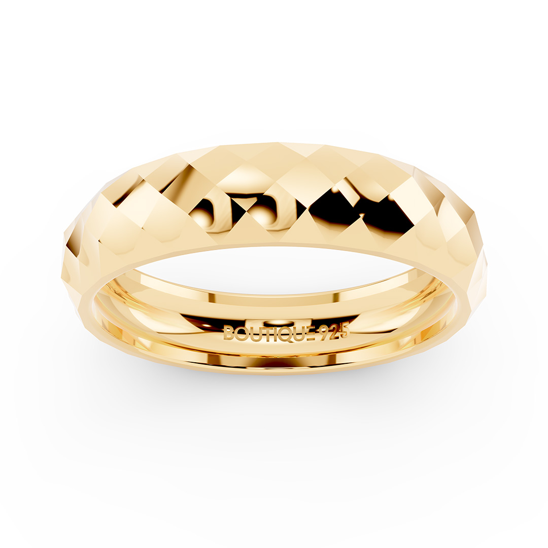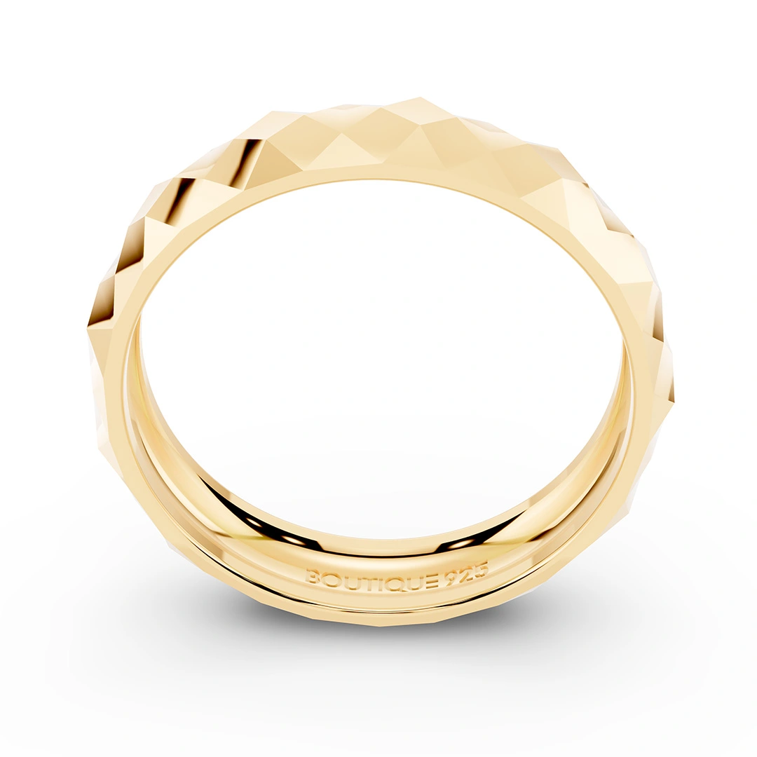 טבעת הולוגרמה מוזהבת, עשויה מחיתוכי לייזר בצורת מעויינים. הטבעת מגיעה באריזת ממותגת ומהודרת עם מטלית לניקוי תכשיטים ללא עלות וחצי שנה אחריות