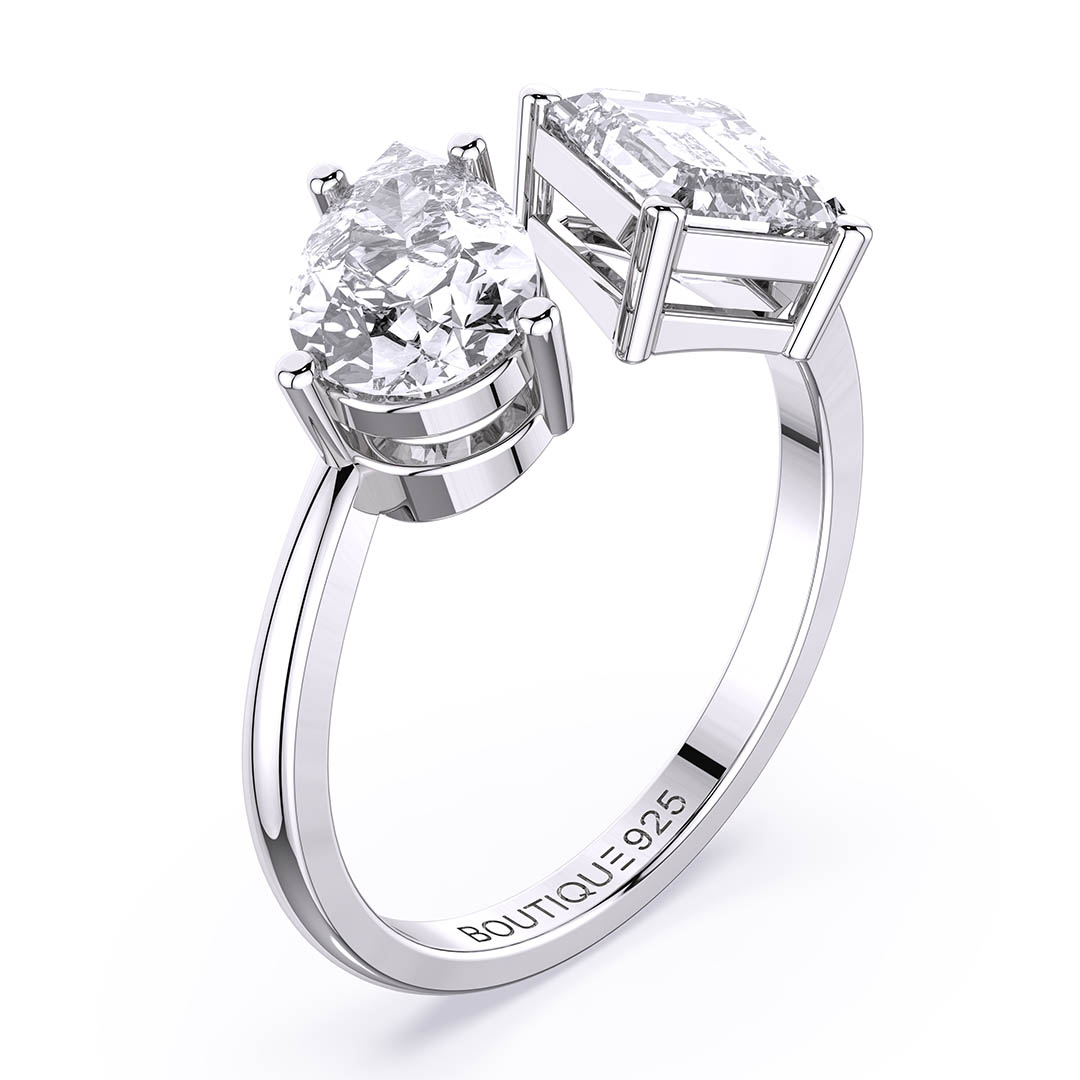 הטבעת משובצת בשני זירקונים שונים – אחד בצורת טיפה עדינה, והשני במבנה גיאומטרי של מלבן. הטבעת מגיעה באריזת מתנה מהודרת וממותגת עם מטלית לניקוי תכשיטים ללא עלות וחצי שנה אחריות!