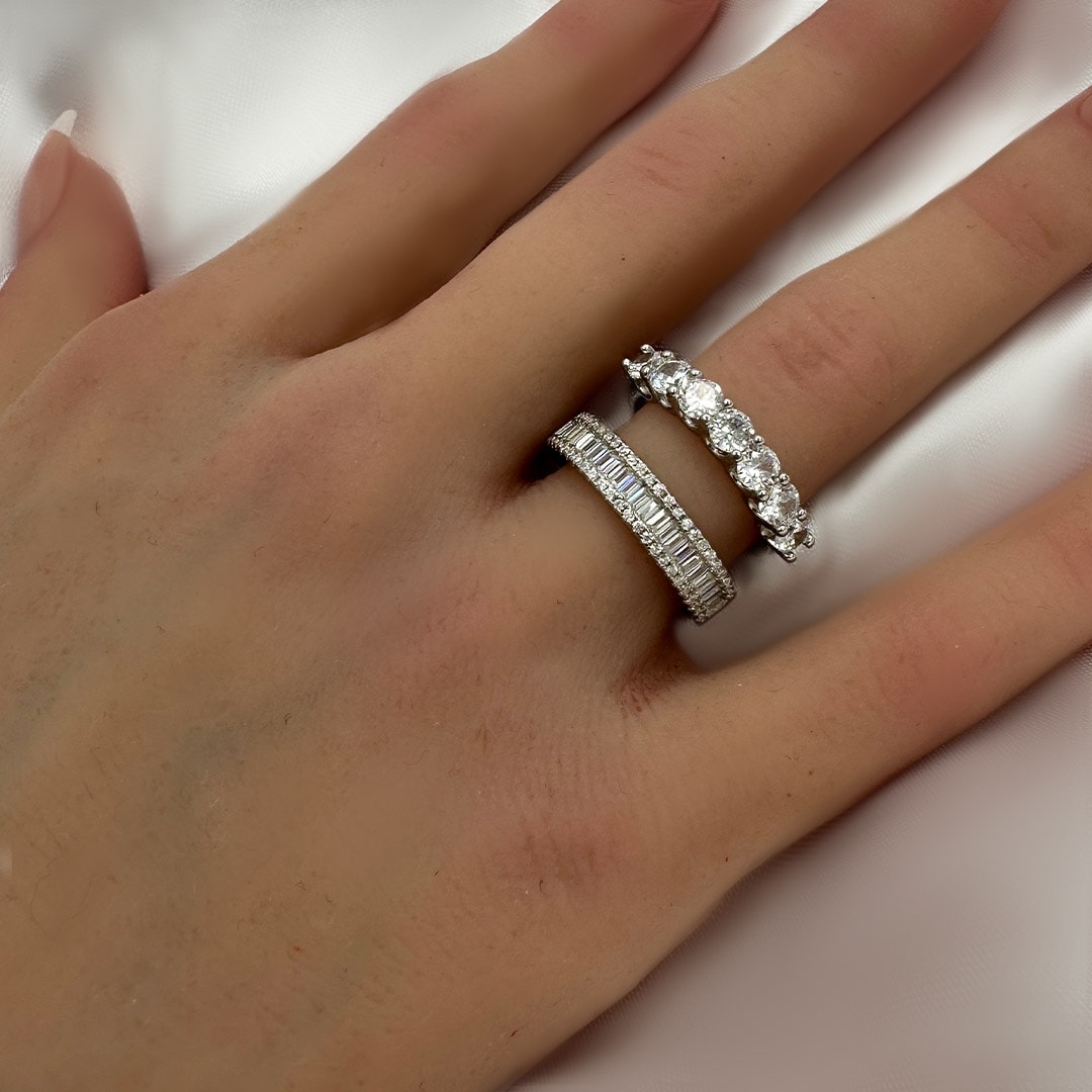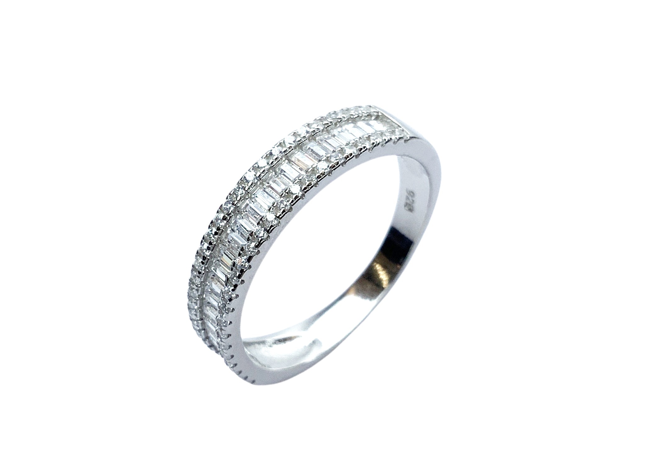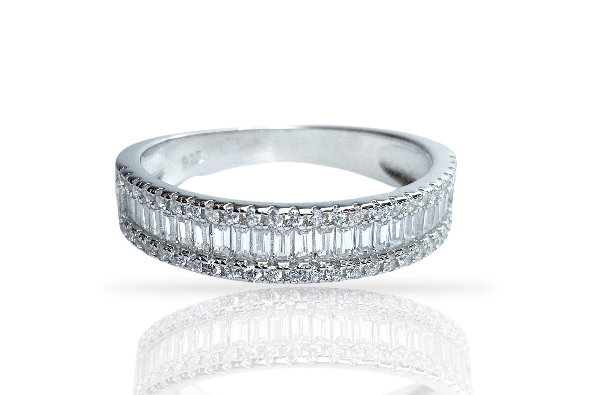 טבעת חצי בגטים מכסף 925 טהור לאישה. הטבעת משובצת בזירקוני AAAA בחיתוך יהלום. מצופה ברודיום להגנה מפני התחמצנות ושריטות. המוצר מגיע באריזת מתנה מהודרת וממותגת! חצי שנה אחריות.