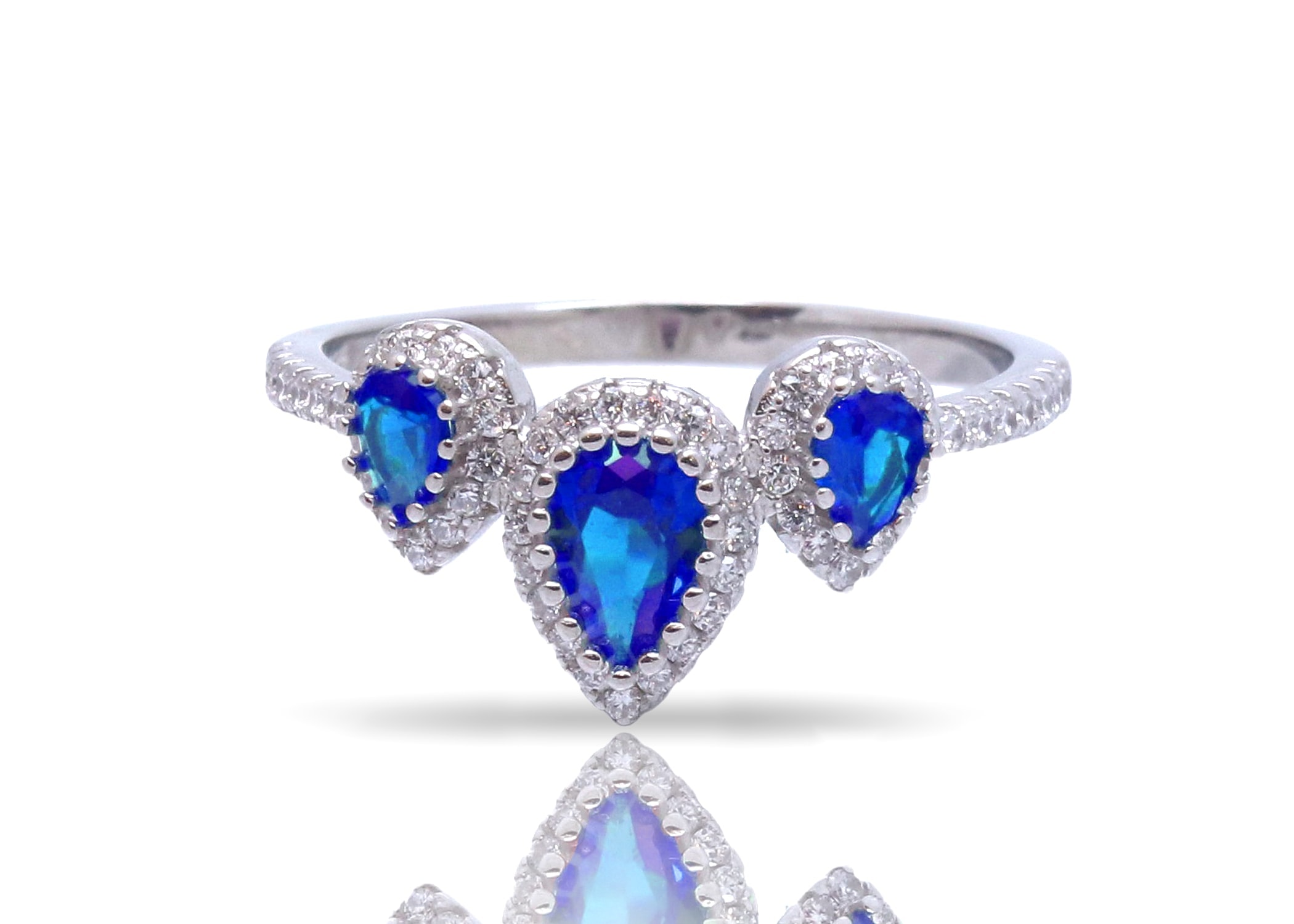 טבעת טיפות עם זרקנים כחולים זירקונים מכסף 925 טהור לאישה. הטבעת משובצת בזירקוני AAAA בחיתוך יהלום. מצופה ברודיום להגנה מפני התחמצנות ושריטות. המוצר מגיע באריזת מתנה מהודרת וממותגת! חצי שנה אחריות.