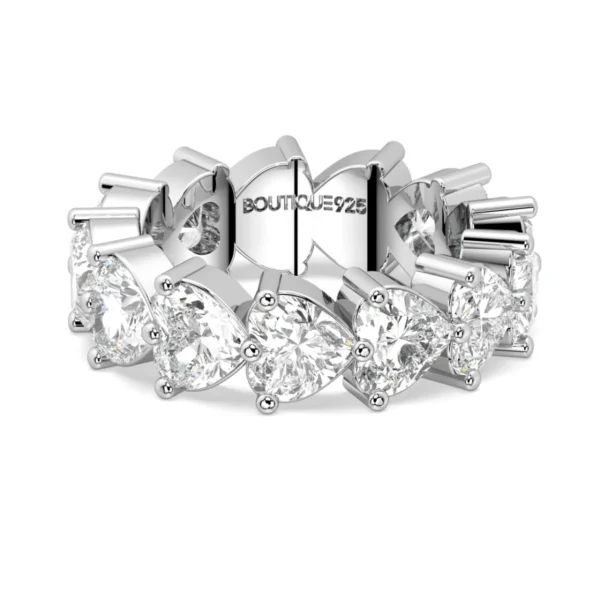 טבעת טניס לבבות עדינים משובת זירקונים בצורת לב בעובי 4 מ"מ מכסף 925 טהור לאישה.