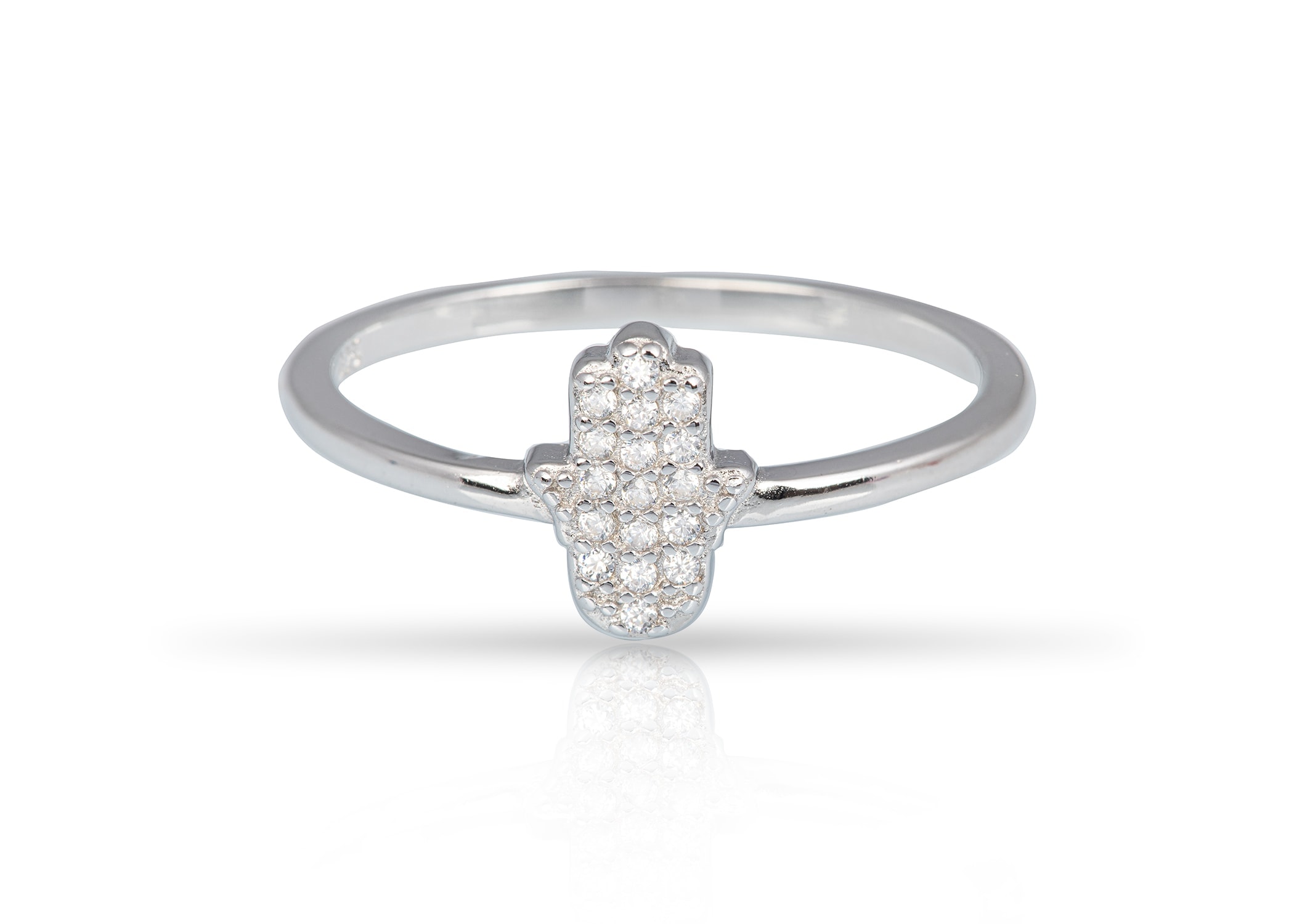 טבעת כסף חמסה קטנה משובצת זירקונים מכסף 925 טהור לאישה. הטבעת משובצת בזירקוני AAAA בחיתוך יהלום. מצופה ברודיום להגנה מפני התחמצנות ושריטות. המוצר מגיע באריזת מתנה מהודרת וממותגת! חצי שנה אחריות.