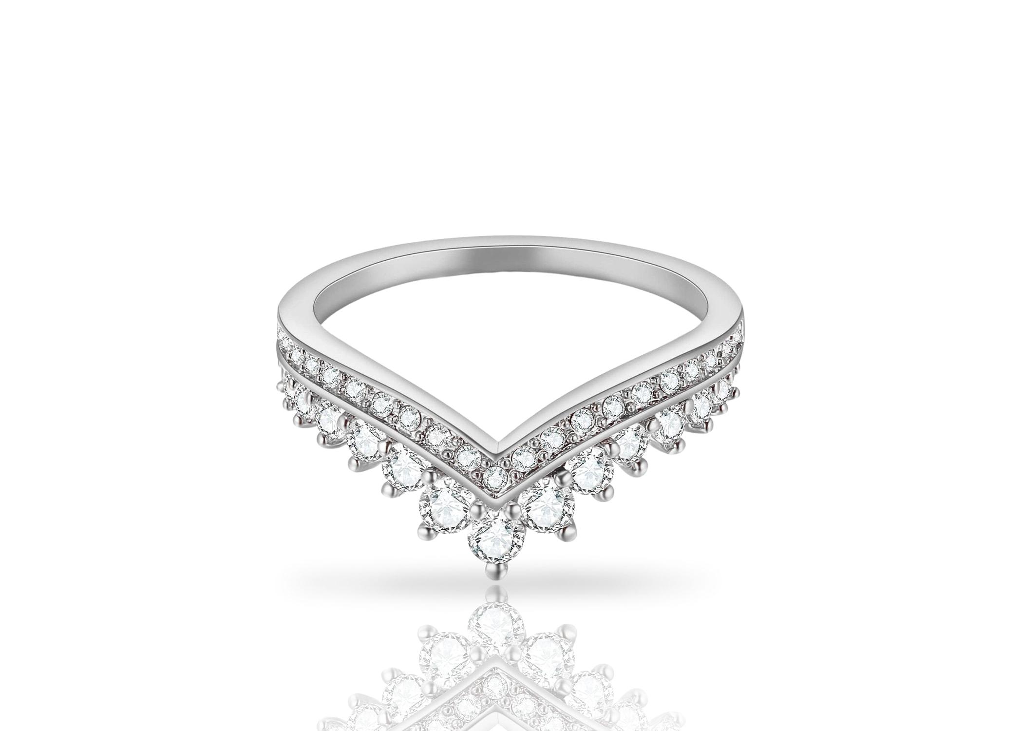 טבעת V שיבוץ עבה מכסף 925