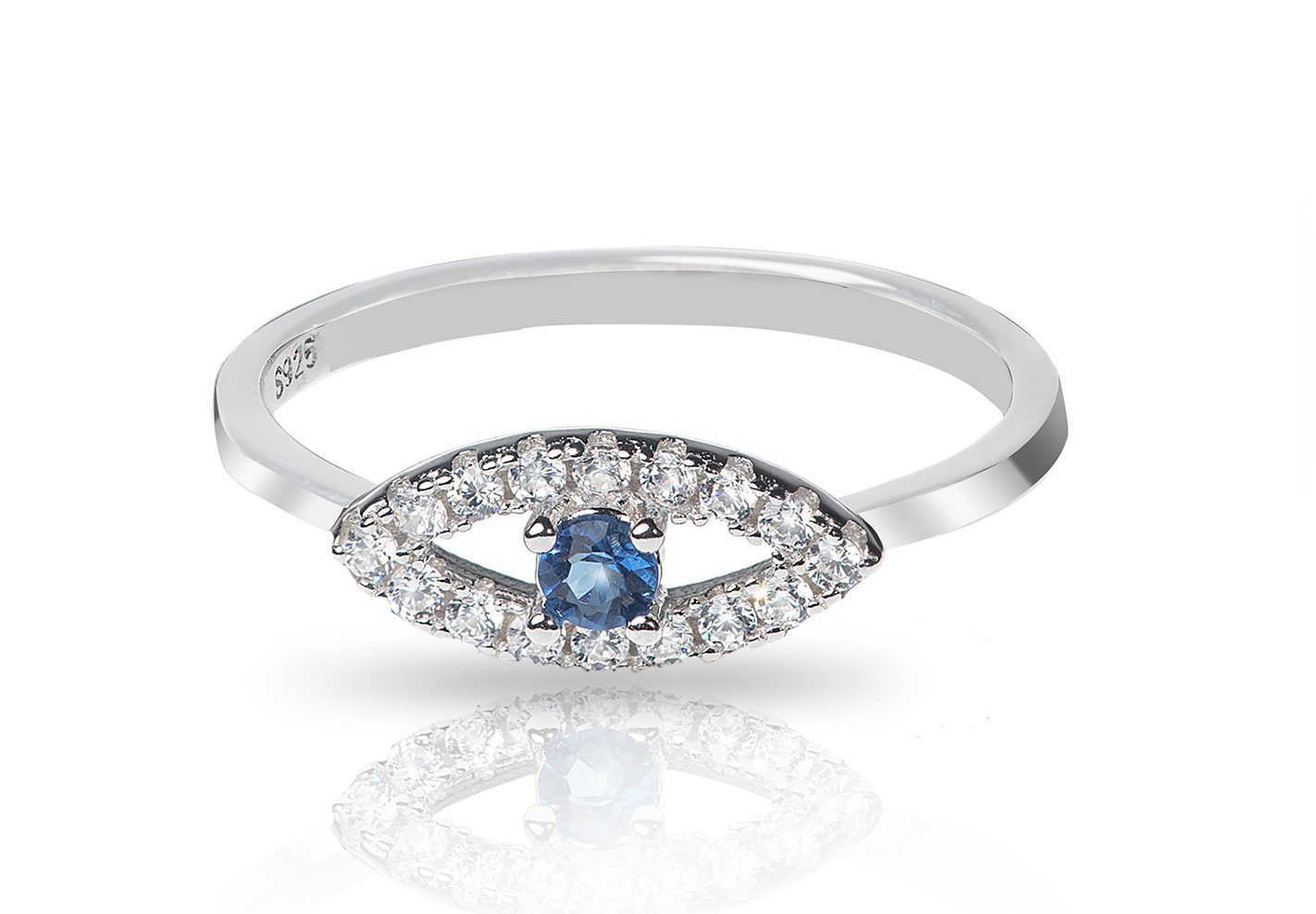 טבעת כסף עין בינונית שיבוץ כחול משובצת זירקונים מכסף 925 טהור לאישה. הטבעת משובצת בזירקוני AAAA בחיתוך יהלום. מצופה ברודיום להגנה מפני התחמצנות ושריטות. המוצר מגיע באריזת מתנה מהודרת וממותגת! חצי שנה אחריות.