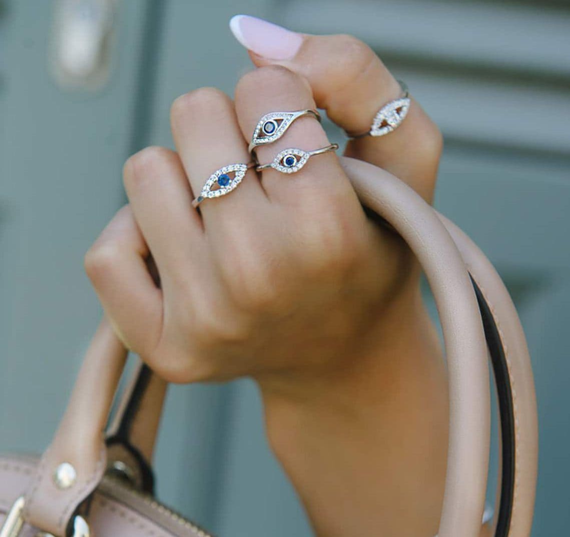 טבעת כסף עין קריסטל