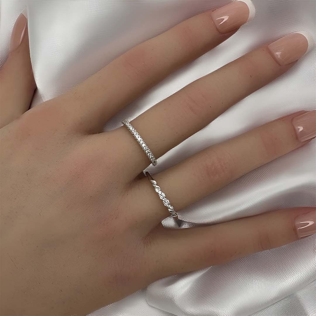 טבעת כסף שורת זירקונים דקה
