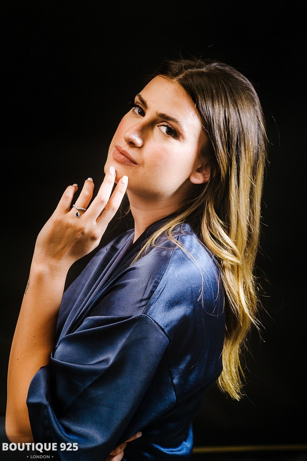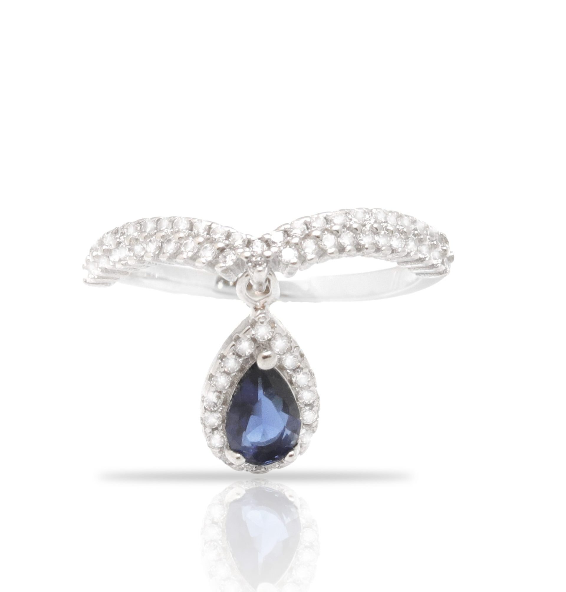 טבעת עם אלמנט טיפה נופל משובצת זרקן כחול וזירקונים
