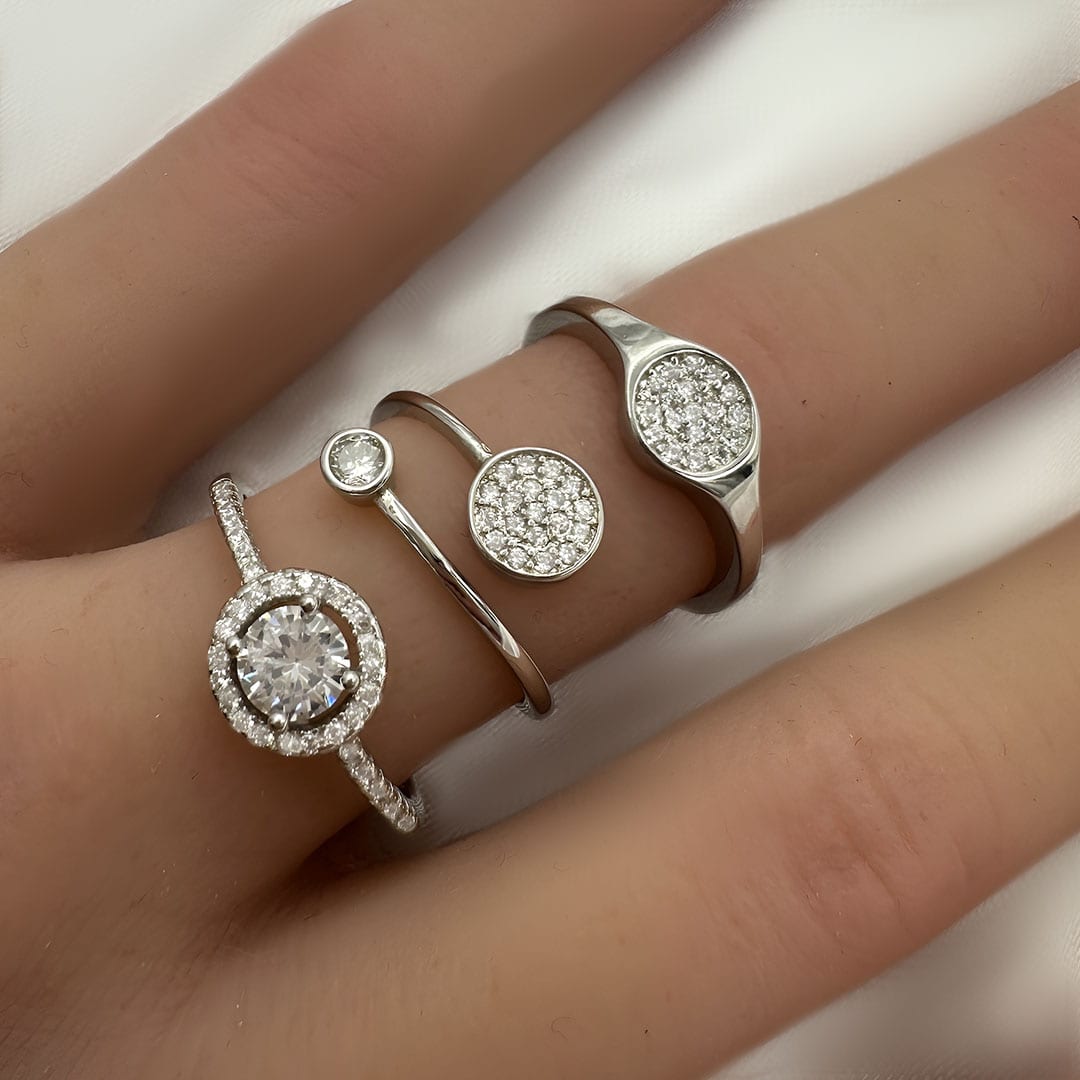 טבעת עם אלמנט עגול מוכנס משובצת זירקונים מכסף 925 טהור לאישה. הטבעת משובצת בזירקוני AAAA בחיתוך יהלום. מצופה ברודיום להגנה מפני התחמצנות ושריטות. המוצר מגיע באריזת מתנה מהודרת וממותגת! חצי שנה אחריות.