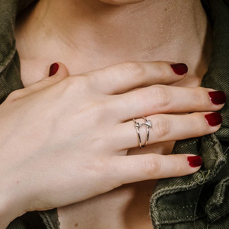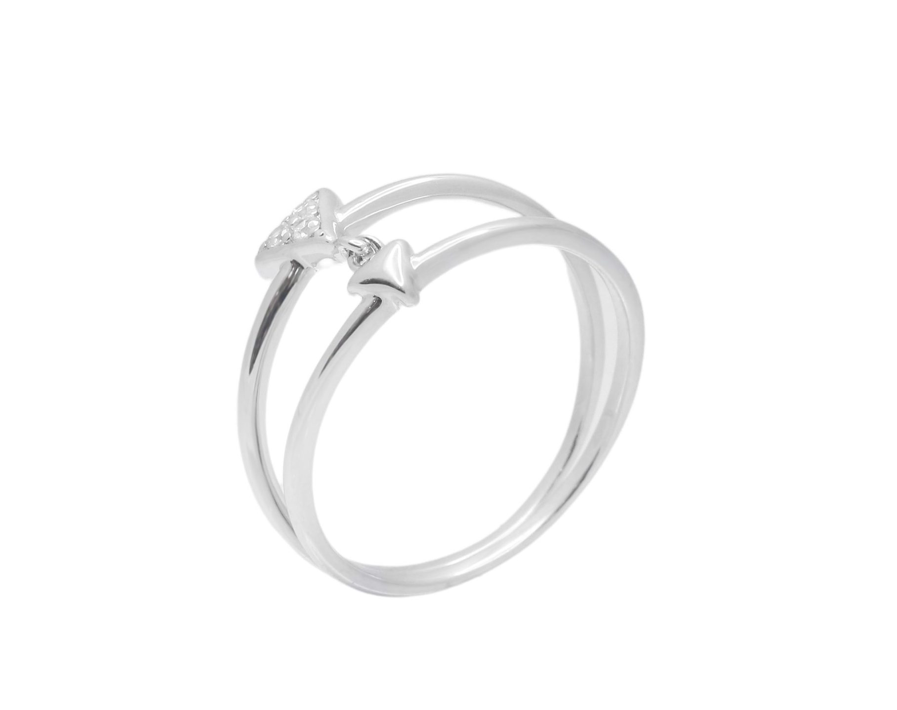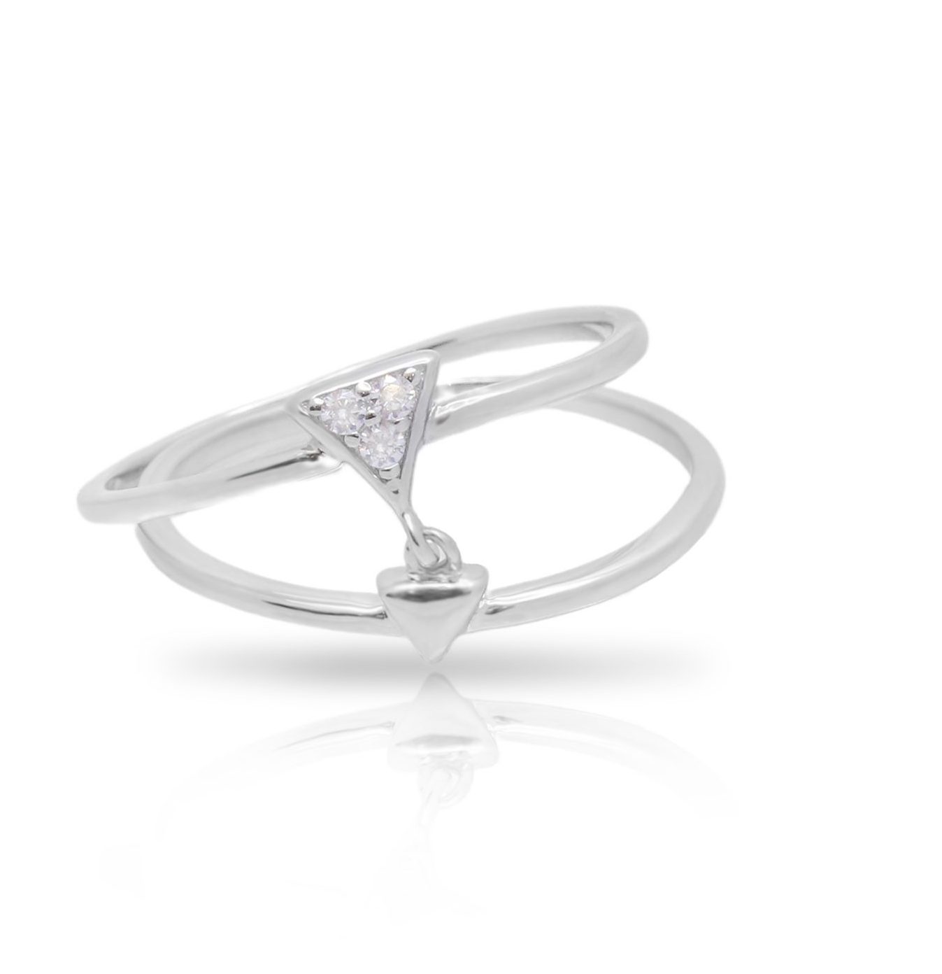 טבעת שכבה כפולה אלמנט משולש משובץ זירקונים מכסף 925 טהור לאישה. הטבעת משובצת בזירקוני AAAA בחיתוך יהלום. מצופה ברודיום להגנה מפני התחמצנות ושריטות. המוצר מגיע באריזת מתנה מהודרת וממותגת! חצי שנה אחריות.