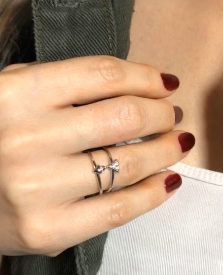 טבעת שכבה כפולה אלמנט משולש משובץ זירקונים