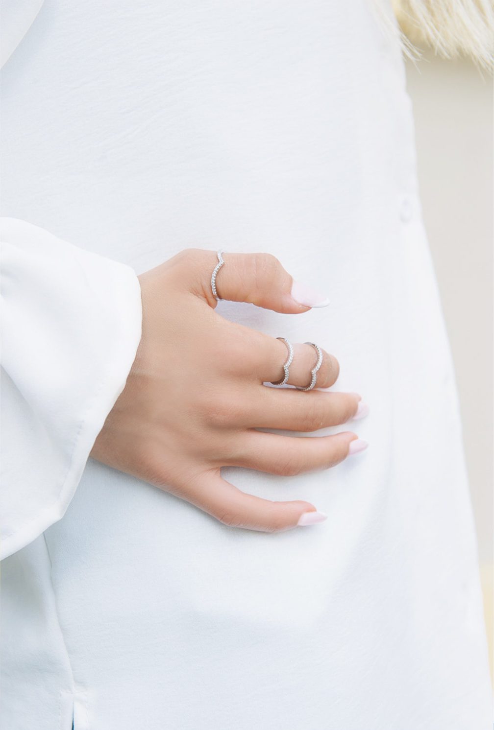טבעת V משובצת זירקונים מכסף 925 טהור לאישה. הטבעת משובצת בזירקוני AAAA בחיתוך יהלום. מצופה ברודיום להגנה מפני התחמצנות ושריטות. המוצר מגיע באריזת מתנה מהודרת וממותגת! חצי שנה אחריות.
