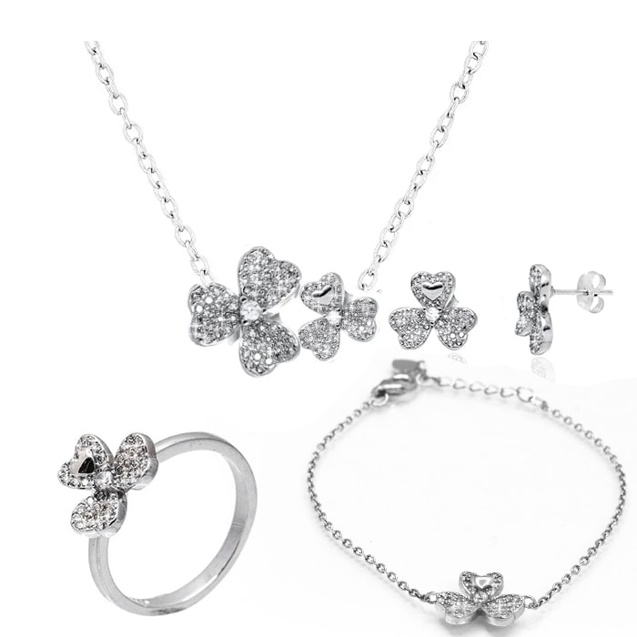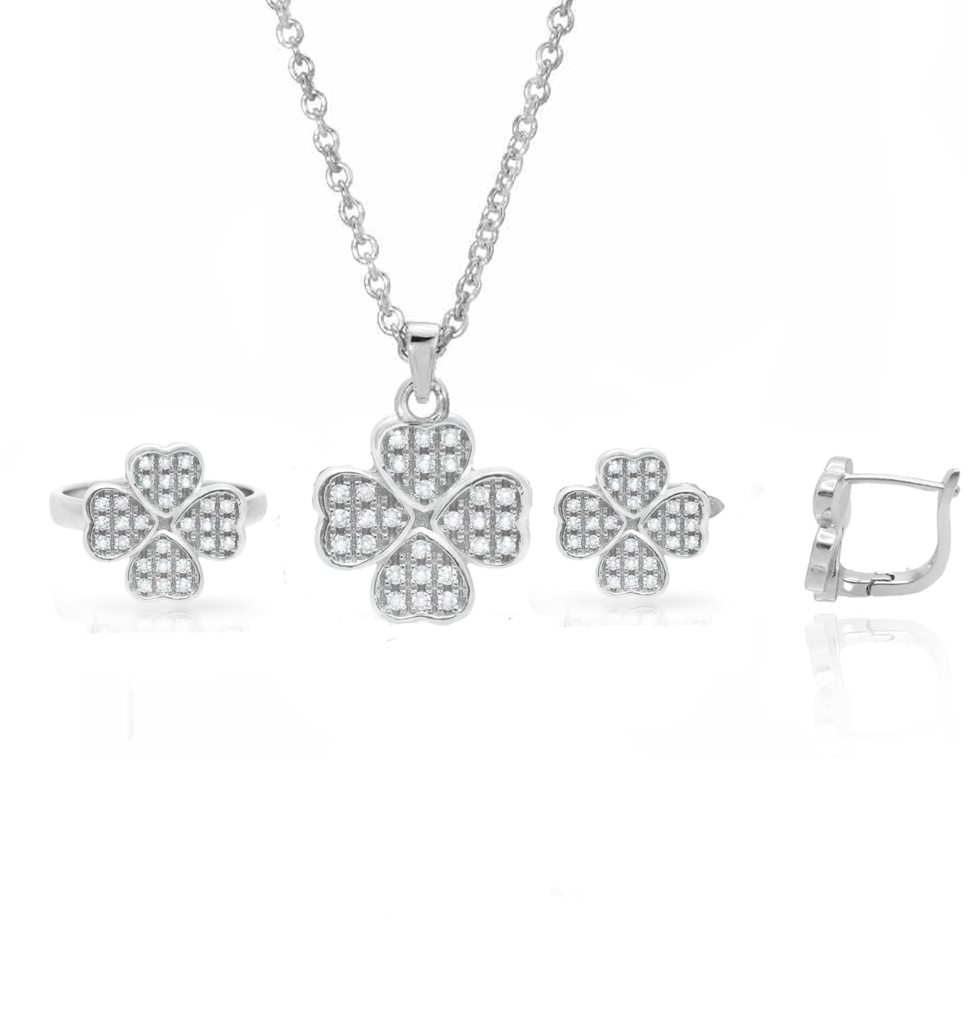 סט עלי תלתן משובץ זירקונים
