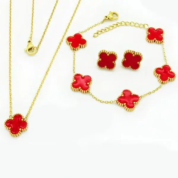 סט עלי תלתן צבע אדום ציפוי זהב 18K