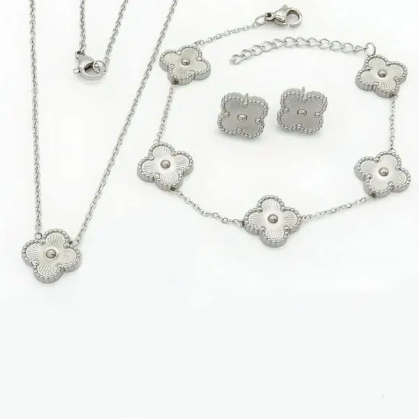הסט עשוי פלדת אל חלד, לא משחיר ולא מוריד צבע. הסט תלתן מגיע באריזת מתנה מהודרת וממותגת עם מטלית לניקוי תכשיטים ללא עלות.