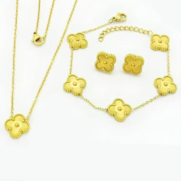 סט עלי תלתן ציפוי זהב 18K