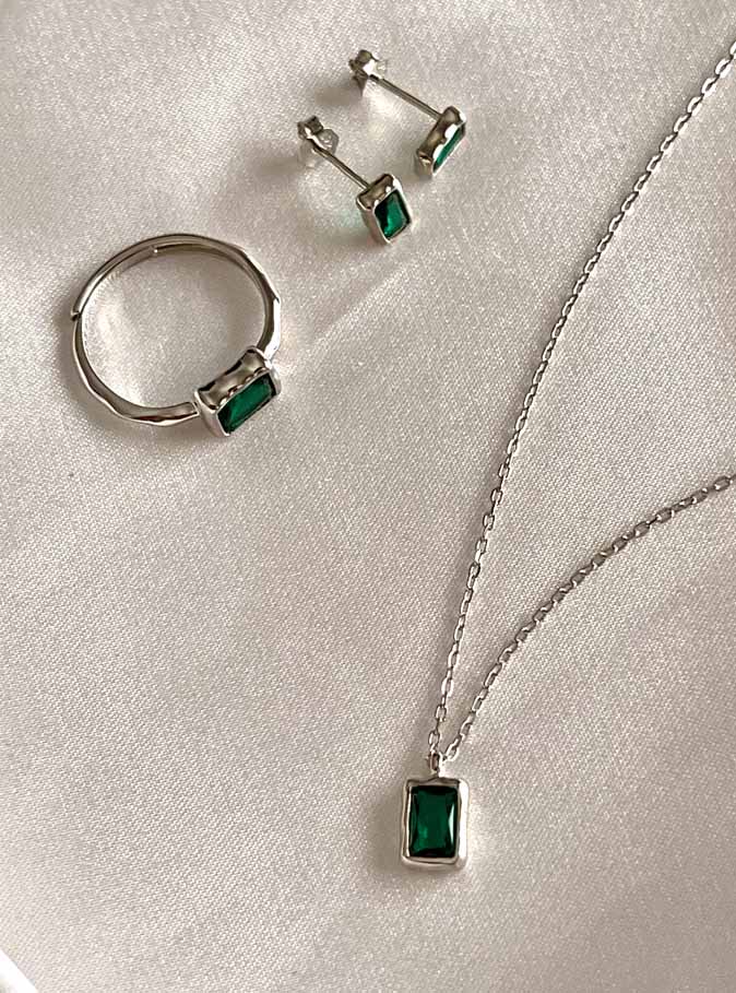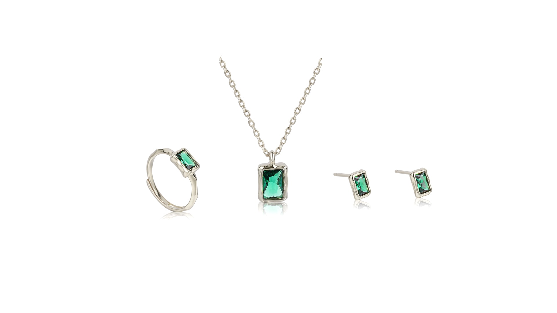 סט תכשיטים איזבל מכסף 925 טהור, שרשרת טבעת ועגילים.