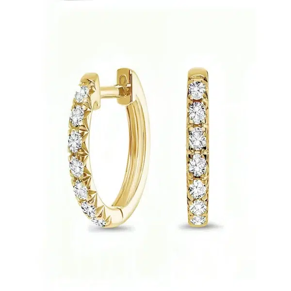 עגילי האגיס קטנים מזהב משובץ זירקונים עגולים מכסף 925 שמצופה בזהב 14K.