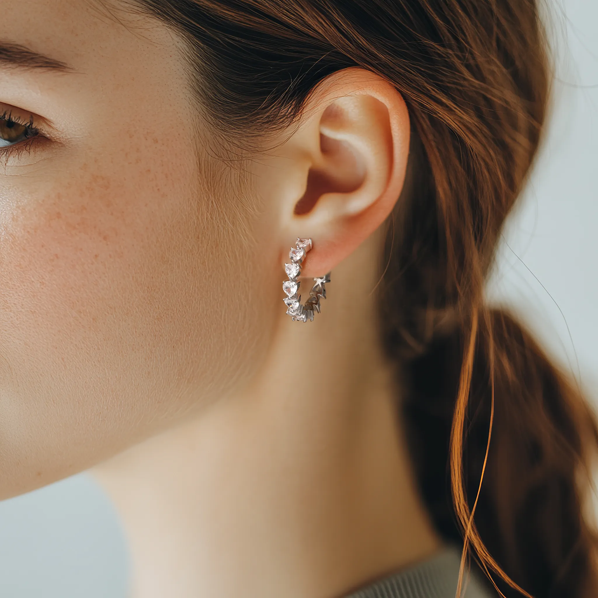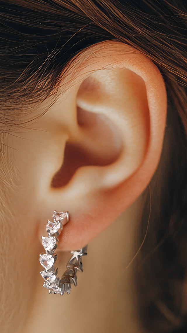 הגימור המלוטש והמשקל המאוזן מבטיחים נוחות לצד יוקרה. פריט חובה לכל אוהבת תכשיטים איכותיים, מושלם לאירועים מיוחדים או כמתנה בלתי נשכחת. זירקוני הלב המשובצים בדייקנות לאורך כל היקף העגיל מנצנצים בכל תנועה, משקפים אור מכל זווית