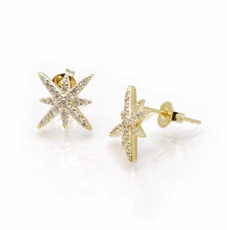 עגילי כוכב הצפון מצופה בצבע זהב משובצים זירקונים לאישה. העגילים משובצים בזירקוני AAAA בחיתוך יהלום. מצופה ברודיום להגנה מפני התחמצנות ושריטות. המוצר מגיע באריזת מתנה מהודרת וממותגת! חצי שנה אחריות.