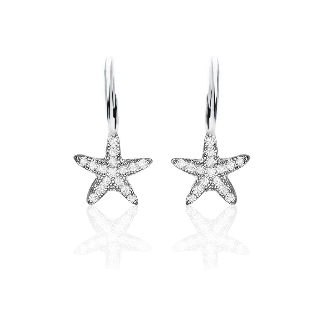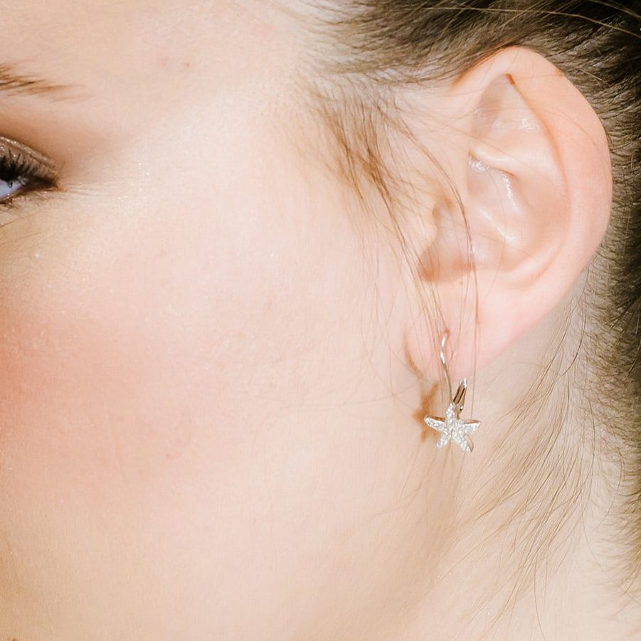 עגילי כסף כוכב משובצים זירקונים