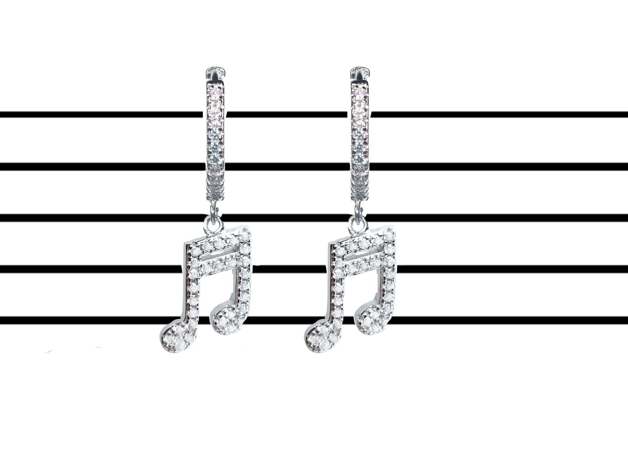 עגילי כסף תו נגינה מכסף 925 טהור משובצים זירקונים. העגילים משובצים בזירקוני AAAA בחיתוך יהלום. מצופה ברודיום להגנה מפני התחמצנות ושריטות. המוצר מגיע באריזת מתנה מהודרת וממותגת! חצי שנה אחריות.