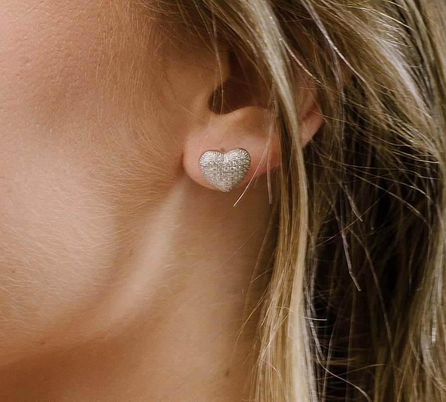 עגילי כסף לב מנופח משובצים זירקונים