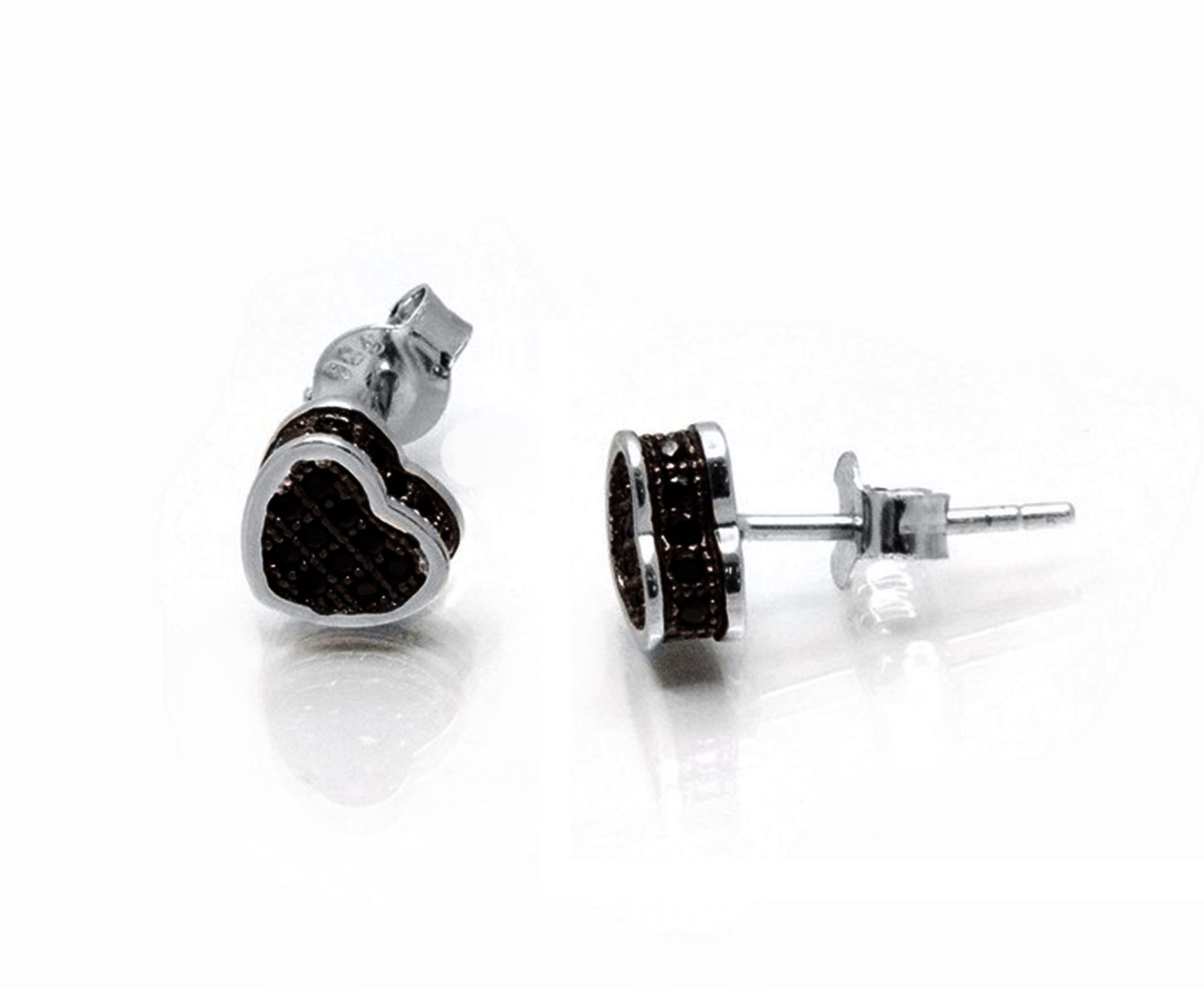 עגילי לב משובצים זירקונים שחורים מכסף 925 טהור לאישה. העגילים משובצים בזירקוני AAAA בחיתוך יהלום. מצופה ברודיום להגנה מפני התחמצנות ושריטות. המוצר מגיע באריזת מתנה מהודרת וממותגת! חצי שנה אחריות.