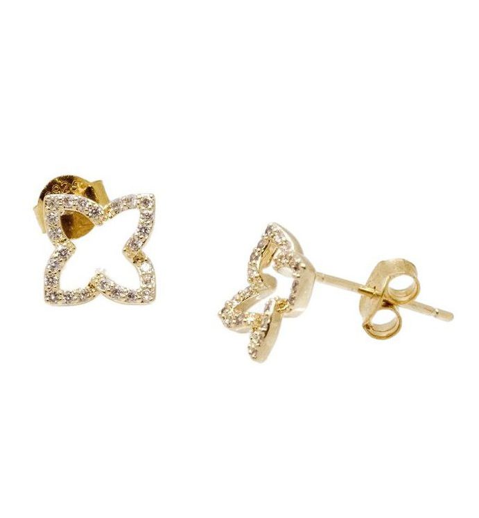 עגילי פרח חלול מכסף 925 טהור מצופים בצבע זהב משובצים בזירקונים