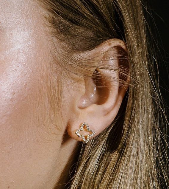 עגילי פרח חלול מכסף 925 טהור מצופים בצבע זהב משובצים בזירקונים לאישה. העגילים משובצים בזירקוני AAAA בחיתוך יהלום. מצופה ברודיום להגנה מפני התחמצנות ושריטות. המוצר מגיע באריזת מתנה מהודרת וממותגת! חצי שנה אחריות.