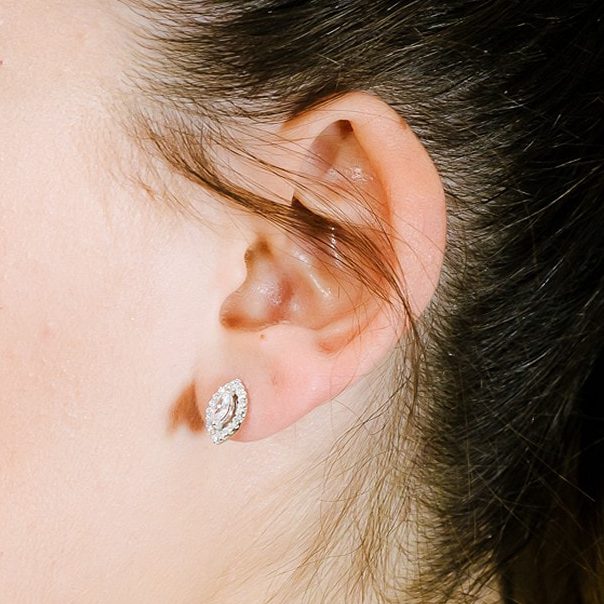 עגילי כסף צמודים בצורת ריבוע בינוני