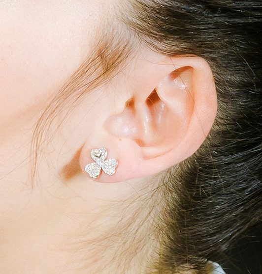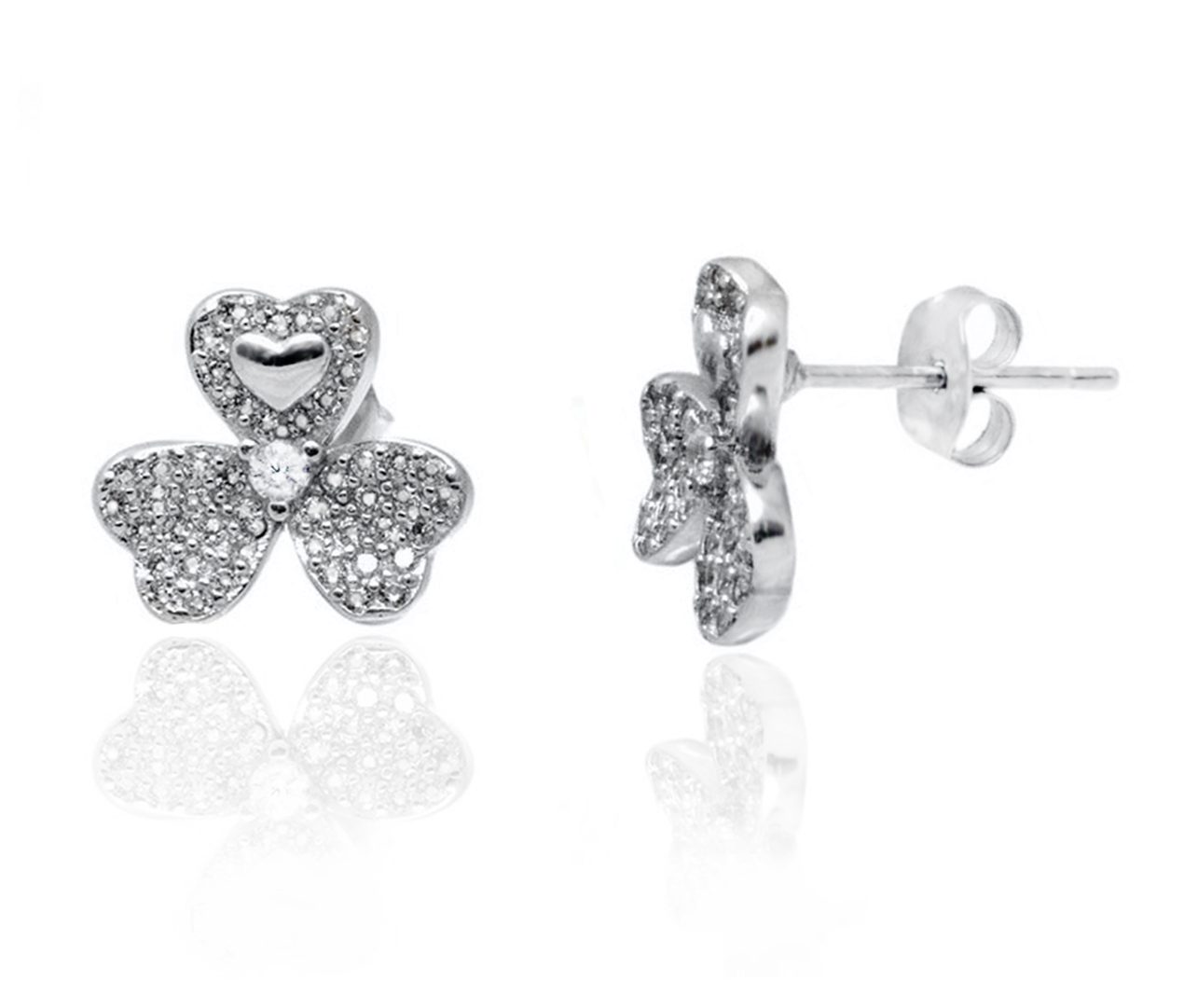 עגילי כסף תלתן עם אלמנט לב