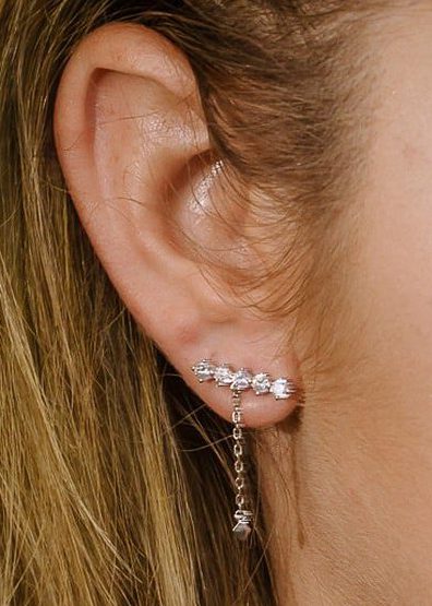עגיל זרקן עם אלמנט נופל משובץ זירקונים מכסף 925 טהור לאישה, עגיל זה נמכר כעגיל בודד. העגילים משובצים בזירקוני AAAA בחיתוך יהלום. מצופה ברודיום להגנה מפני התחמצנות ושריטות. המוצר מגיע באריזת מתנה מהודרת וממותגת! חצי שנה אחריות.
