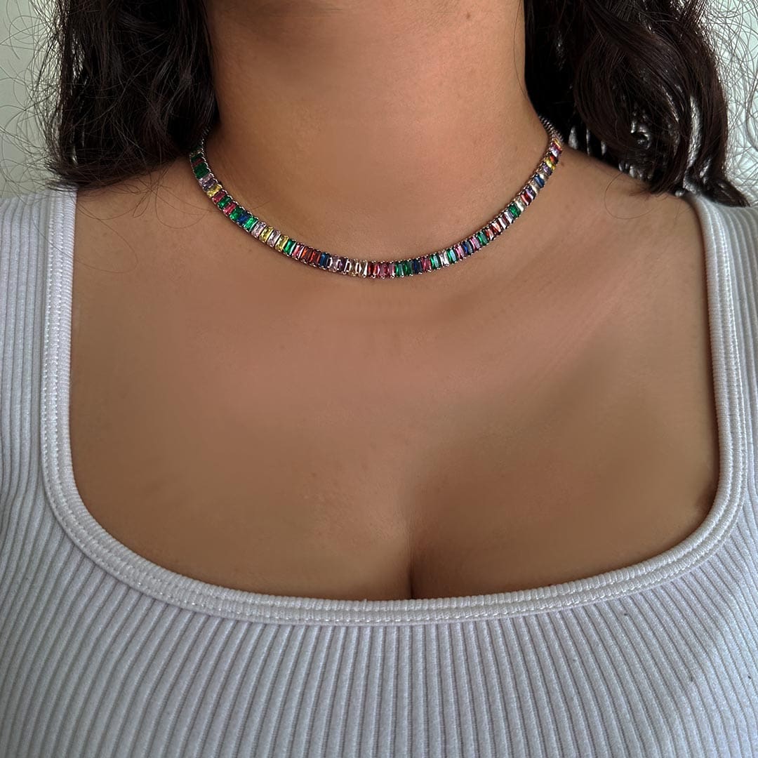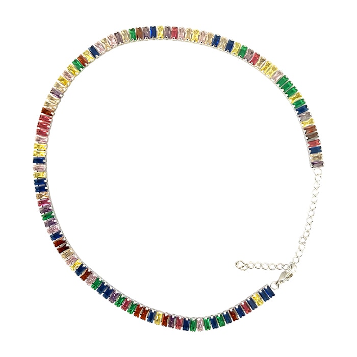 צ'וקר בגטים משובץ בבגטים צבעוניים ונוצצים. הצ'וקר מתחיל ממידה 33 ס"מ ויכול להגיע לאחר סגירה כרצונך עד מידה של 40 ס"מ. הצ'וקר מגיע באריזת מתנה ממותגת ומהודרת, עם חצי שנה אחריות ומטלית לניקוי תכשיטים ללא עלות!