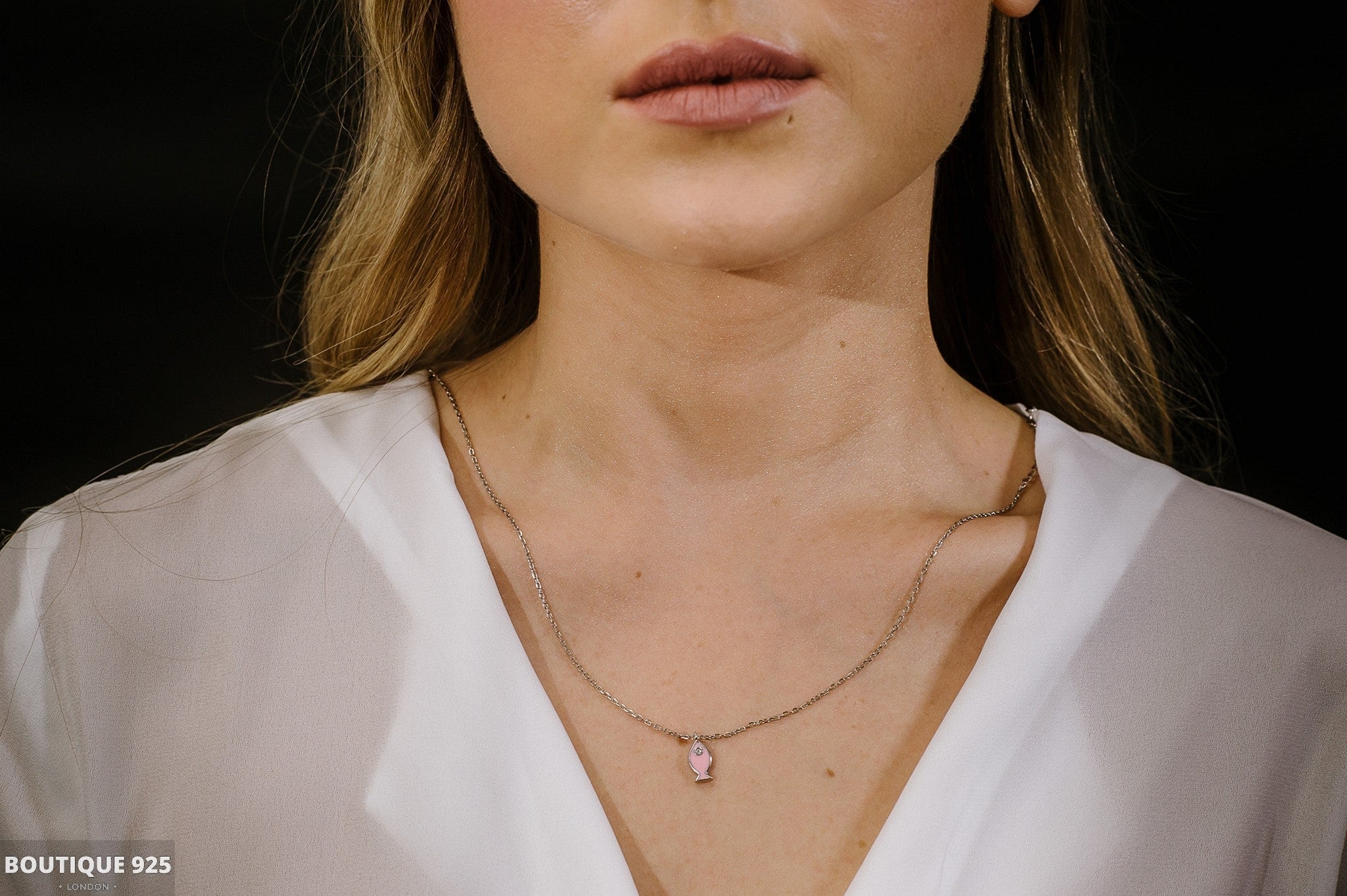 צ'וקר דג ורוד משובץ בזירקון מכסף 925 טהור לאישה. השרשרת משובצת בזירקוני AAAA בחיתוך יהלום מצופה ברודיום להגנה מפני התחמצנות ושריטות. המוצר מגיע באריזת מתנה מהודרת וממותגת! חצי שנה אחריות.
