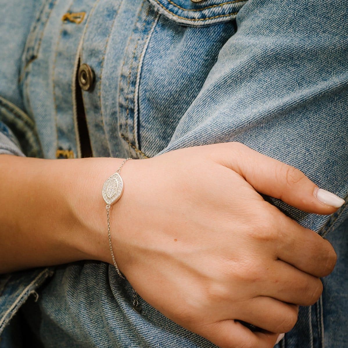 צמידי עין משובצת זירקונים מכסף 925 טהור לאישה. הצמידים משובץ בזירקוני AAAA בחיתוך יהלום. מצופה ברודיום להגנה מפני התחמצנות ושריטות. המוצר מגיע באריזת מתנה ממותגת ומהודרת! חצי שנה אחריות.