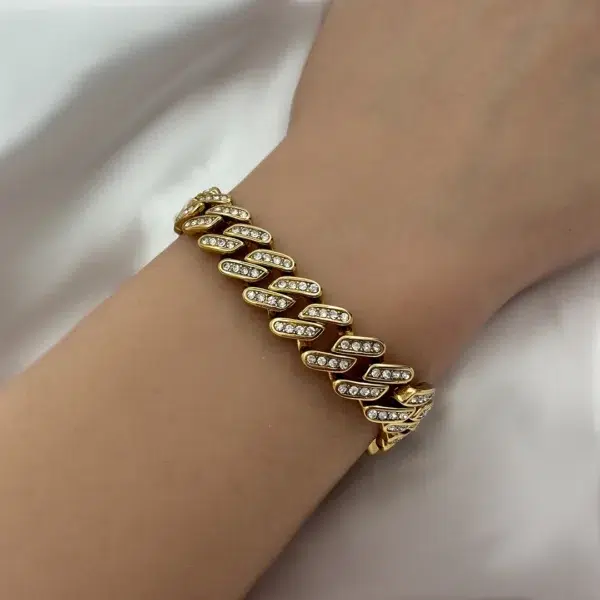 צמיד גורמט דק לגבר ציפוי זהב 18K, לצמיד יש סוגר חזק עם חוליות נעימות למגע שמשובצות בזירקונים מבריקים.