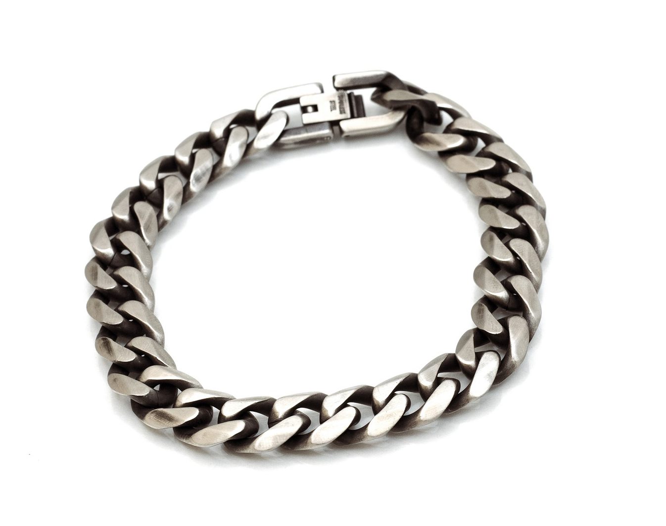 צמיד גורמט בצבע כסף שעבר השחרה, עשוי מפלדת אל חלד, עמיד נוח וחזק.